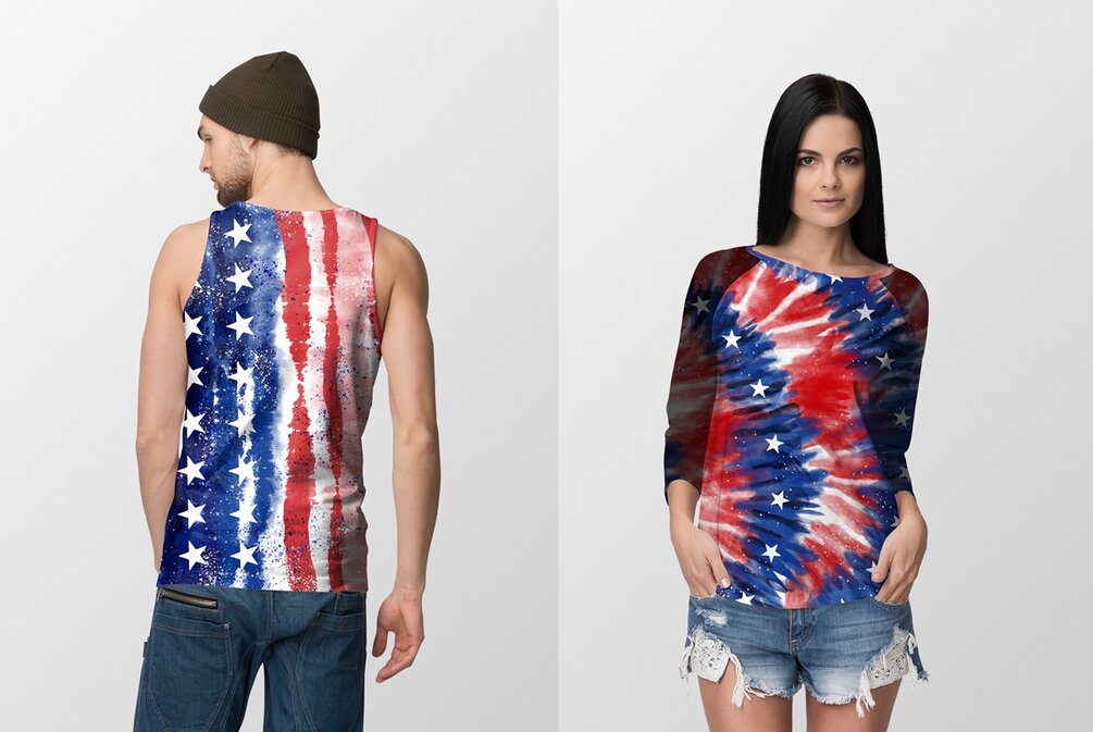 4th of July Digital Tie-Dye Set of 5 Backgrounds