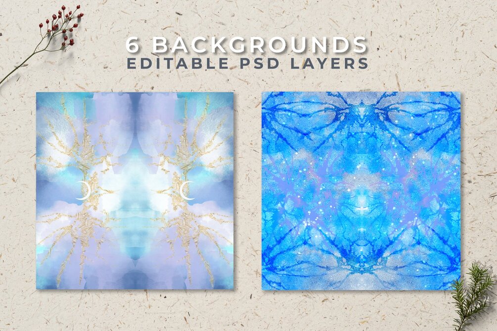 - 6 Editable Photoshop PSD files included, 1920 px by 1920 px widescreen, move layers around and change colors as you wish! Save as a JPEG and duplicate the image to create a square mirror image.