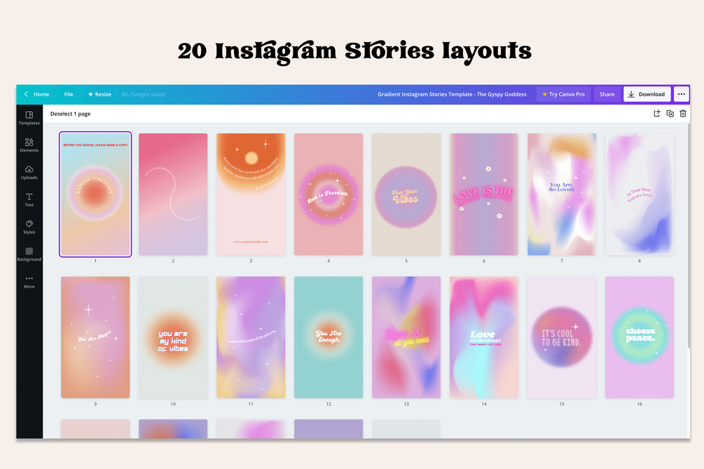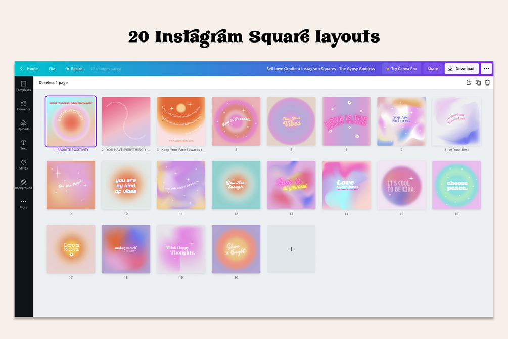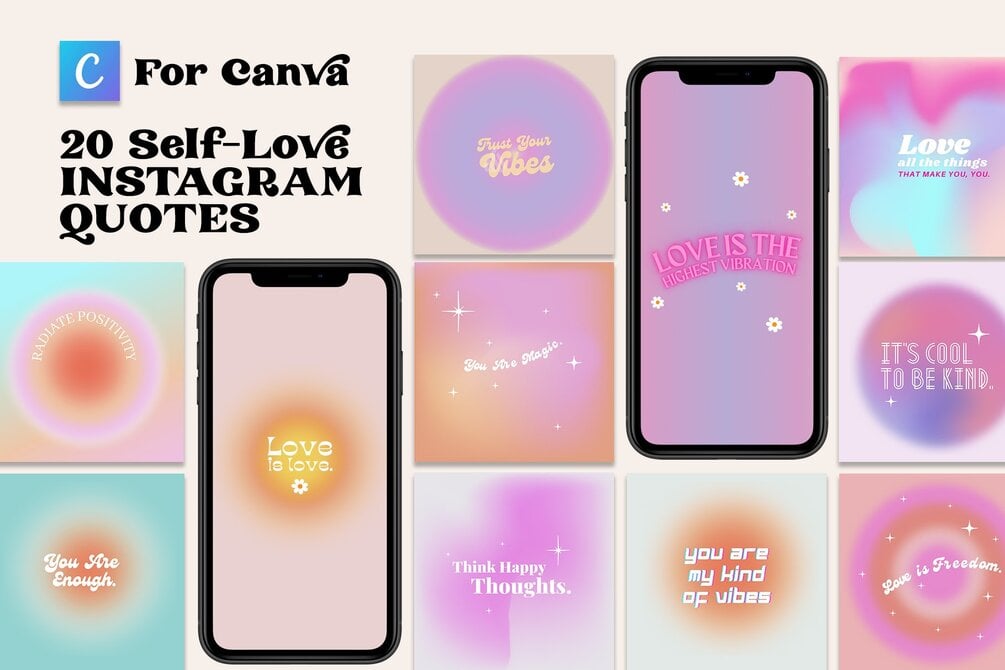 20 INSTAGRAM Self-Love Gradient Templates in CANVA Version