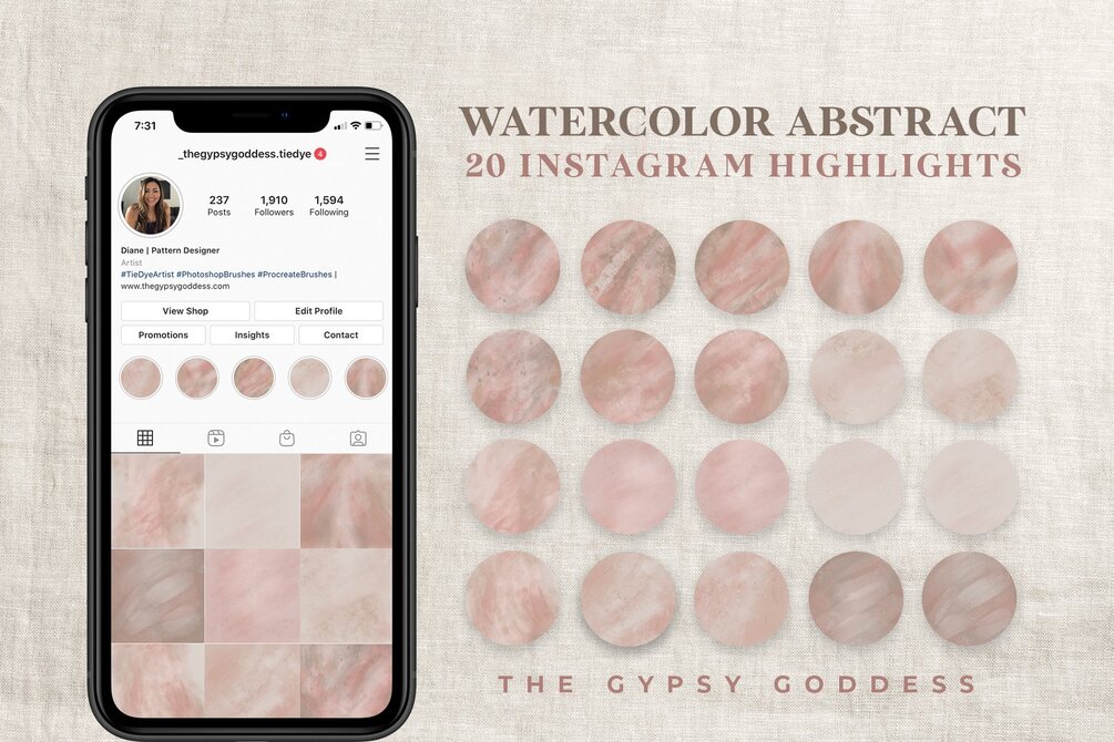 20 Instagram Highlight Icons - Watercolor Abstract - Earthy Tones