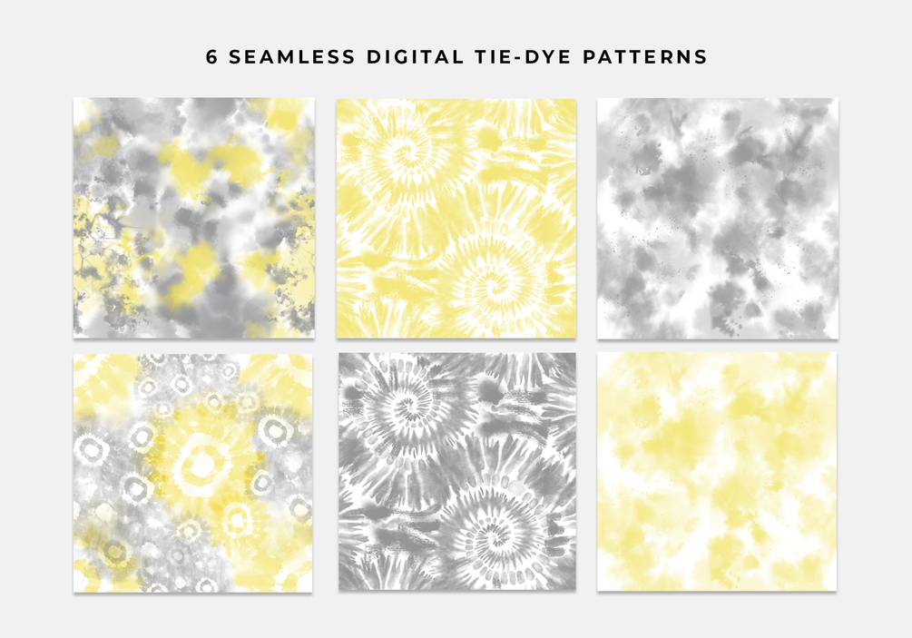 Yellow & Gray Tie-dye 6 Seamless Patterns